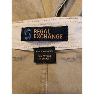 These khaki cargo shorts by Regal Exchange offer a comfortable fit and practical design. Made with a cotton-spandex blend for flexibility.