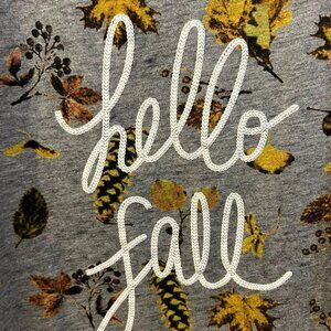 4.444 DFT Maurices - Gray and Multi-Colored Leaves Short Sleeve "Hello Fall" T-Shirt 4(4X)