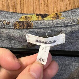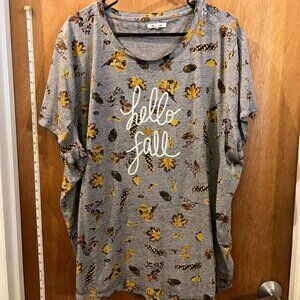 Size 4(4X) - Maurices - Gray and Multi-Colored Leaves Short Sleeve "Hello Fall"