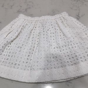 Size 4-5 JCrew Crewcuts skirt. Beautiful white eyelet skirt, fully lined, elastic waistband, and two hidden front pockets. Perfect for the summer! Excellent condition, no stains, no tears. Smoke-free home. Consider bundling with my other listings to get discount.