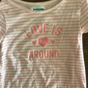 Striped pink shirt has ruffle sleeves and was worn lightly.