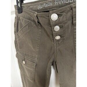 * Keywords: cargo pants, skinny cargo pants, army green pants, button down pants, size 5 pants, Almost Famous pants, women's pants