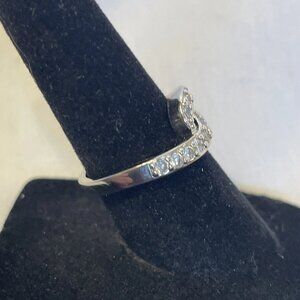 Size 5 Silver Tone Clear Stone Channel Swirl Pinky Ring Child Size Toe Ring