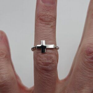 Size 5 Sterling Silver Bright Cross Braided Band Ring A3561