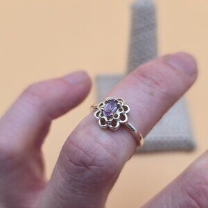 Size 5 Sterling Silver Small Oval Amethyst Gem Band Ring A5425