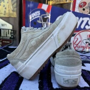 Elevate your sneaker game with these VANS Old Skool Stacked sneakers. The gray checkered pattern and chunky platform sole give a classic and retro vibe, perfect for any casual or activewear occasion. The lace-up closure and low-top shoe shaft style provide a comfortable fit, while the rubber cleat type and water-resistant features ensure durability and protection.