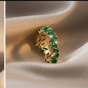 Emerald color and gold infinity ring size 5. Never worn. Size is too big and can’t return