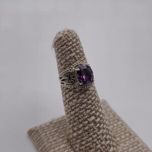 Size 5.25 Sterling Silver Fancy Purple Cubic Zirconia Petite Ring A3224