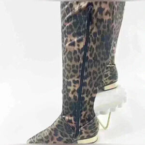 Size 5.5 NWT NIB Bamboo LEOPARD Print velvet Stardom OTK boot gold heel