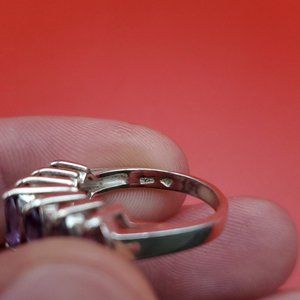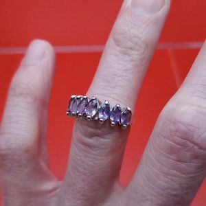 Size 6 925 Sterling Silver Seven Marquise Amethyst Gems Ring