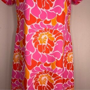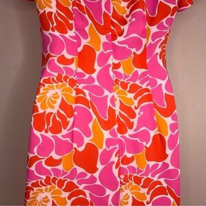Size 6 Banana Republic Short Sleeve Colorful Dress Pink Orange Red Abstract