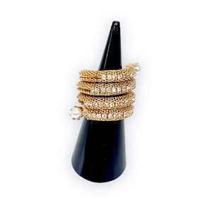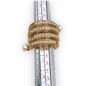 Size 6 Bebe Gold Mesh Coil Ring with Pearls and Rhinestones