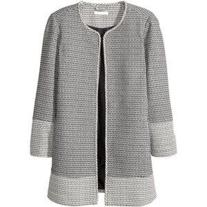 Size 6 Black & White Patterned Open Front Long Jacket w/Pockets Blazer Tweed