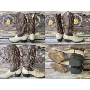 Size 6 C (8 Women's) Two Tone Leather Western Cowboy Boots by NOCONA Vintage