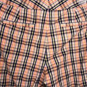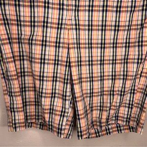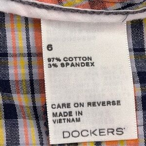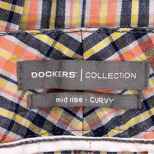 Size 6 Dockers Plaid Shorts Womens Orange Blue Mid Rise Curvy Cotton Blend