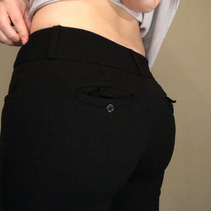 These dress pants fit slightly bigger than true to size. I range from sizes 6-10. They were only worn a few times many years ago and I have no use for them any longer! Second picture shows their bootcut fit at the bottom. Gently used but still in moderate condition! Functional front and back pockets too:) I have a navy pair in another listing