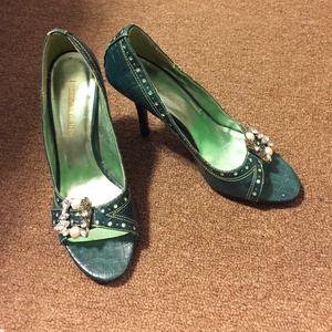 Mint Green heel in fairly new condition. Little scuff on the inner part of the left shoes heel, barely noticeable unless staring intently.