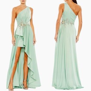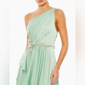 Size 6 Mac Duggal Sage Green One Shoulder Asymmetrical Gown Prom Dress