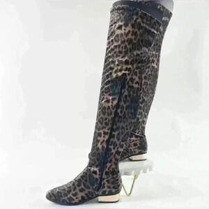 Size 6 NWT NIB Bamboo LEOPARD Print velvet Stardom OTK boot gold heel