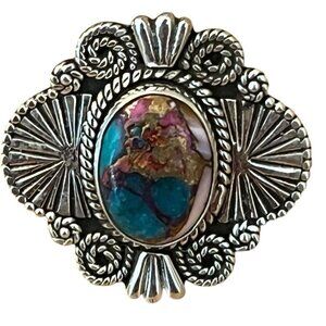 Size 6 Pink Dahlia Copper Turquoise Sterling Silver Ring Native American Ornate