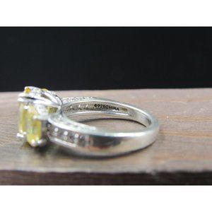 Size 6 Sterling Silver Stunning Triple Yellow Cubic Zirconia Band Ring