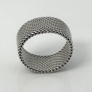 Size 6 Tiffany & Co Somerset Mesh Weave Firm Solid Ring in Sterling Silver