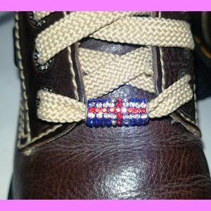 One of a kind Doc Marten's. Listed size is UK 4 (UK sizing is unisex), and a UK4 traslates to US Women's size 6 using Doc Marten's official sizing chart. The black glitter on the outsoles is permanent. The "thingies" on the laces have little crystals that appear to be hand-set. Picture taken next to a Hershey's bar only to show color/brightness scale. From a pet-free and smoke-free home. Thanks for looking :-) -Johnny-