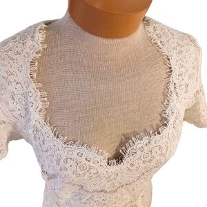 Size 6 Violets & Roses Womens Sheath Lace Dress Short Sleeve Ivory Wedding Bride