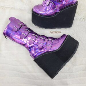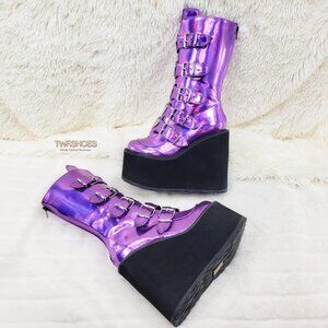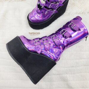 Size 6 Wicked Lover Purple Mid Calf Platform Cyber Stomper Festival Boots Hearts