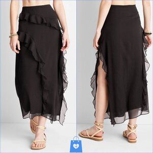 Size 6 - Womens Asymmetrical Ruffle Maxi Skirt - Future Collective - Black