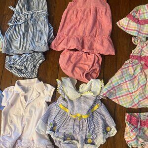 Bundle of 7 baby dresses. Various brands. Polo, Gymboree, Carters, etc. Excellent condition with accessories like hats and diaper covers included