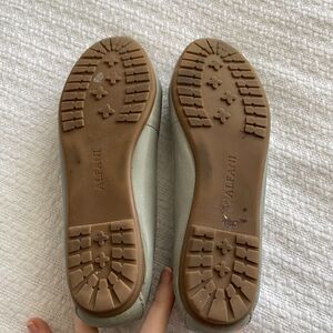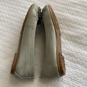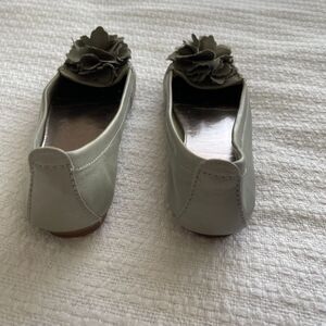 Size 6.5 Alfani Cory gray leather flats with fabric floral detail. Gently used and stored with inserts to keep the shape. Please see photos for condition.