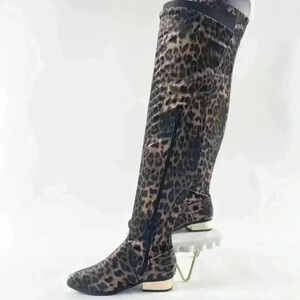 Size 6.5 NWT NIB Bamboo LEOPARD Print velvet Stardom OTK boot gold heel
