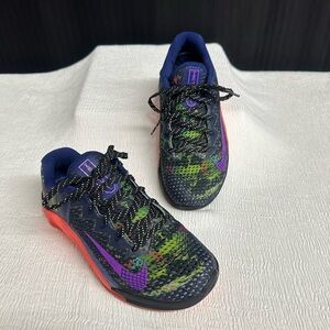 Vibrant Nike athletic shoes for women. Features a multicolor design with purple, green, and black accents. Perfect for sports and casual wear. Size 6.5 - Nike Metcon 6 AMP I Am Not A Robot 2020 - CT1246-460