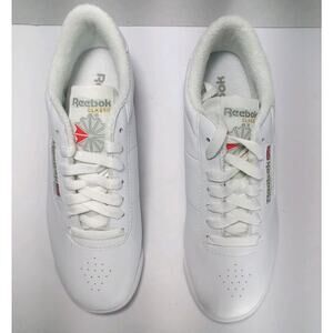 The product is a pair of new in the box Reebok VTG Princess White Tennis Shoes in size 6.5. These athletic sneakers feature a low top design, perfect for tennis players. The shoes are designed for women and come in a classic white colorway. With a style code of CN2212 and a model name of Reebok Princess, these shoes offer both comfort and style for athletic activities like tennis.