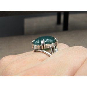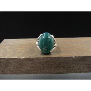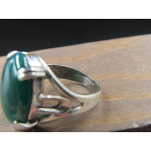 Size 6.5 Sterling Silver Dark Green Faux Stone Band Ring Vintage Statement