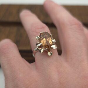 Size 6.5 Sterling Silver Unique Setting Cubic Zirconia Gem Ring A1004