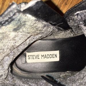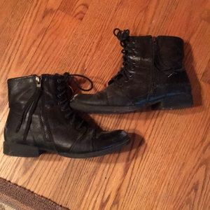 Tall brown boots are the same mid calf height from express, size 7. Few signs of being worn. The short black boots are Steve Madden, size 6.5. These have clear signs of wear, some scuffs around the toes, however they are in good condition and look “edgy.” I wear a 6-6.5 in shoes and these both fit me perfectly. Best offer for both of them, also willing to sell individually!