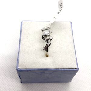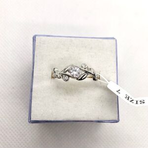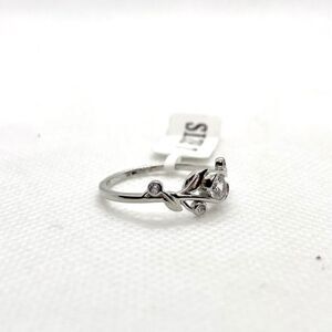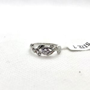 Size 7. Solid 925 sterling silver floral ring. The focal point of this ring is a round clear CZ gem fashioned to look nested between two stems of leaves and berries (tiny clear CS stones).
