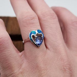 Size 7 925 Sterling Silver Fancy Purple Cubic Zirconia And Blue Green Opal Ring