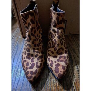 Good Used Condition Women's Size 7 A New Day Brown Tan Spotted Animal Cheetah Leopard Print Side Zip Pointed Toe Ankle Boots Booties