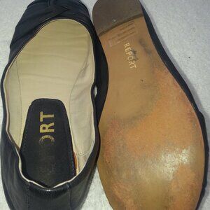 Black Report size 7 worn school ballet flats. Worn with socks and tights only. Buttery soft. No rips or tears. Cute. Sold as is as previously worn.