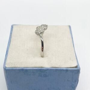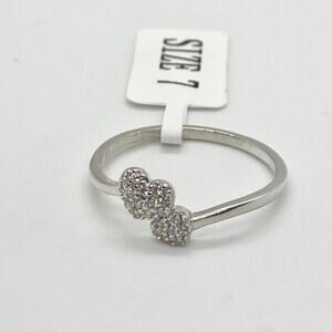 Size 7. Solid 925 sterling silver ring. The focal point of the ring is two hearts encrusted with tiny clear / white CZ stones. Stamped 925 on the inside of ring.