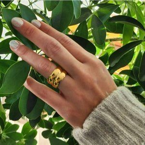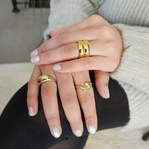 New 18K Gold Plated Stainless Steel Wide Double Band Chunky Ring