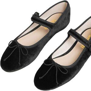 Size 7 Miss Left Women Bowknot Ankle Strap Classic Ballet Flats Black