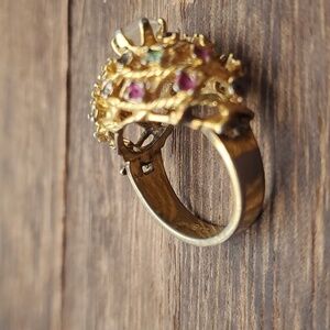 Size 7 R544 1970s gem cluster Victorian styled ring 18k hge missing some stones