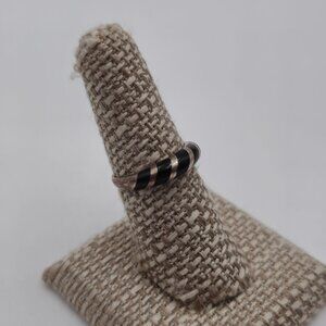 Size 7 Silver And Copper Tone Black Inlay Ring A3039