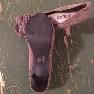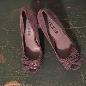 Adorable peep toe pumps in a mode color. Perfect to dress up a casual outfit around the holidays! Gently worn, great condition!