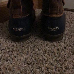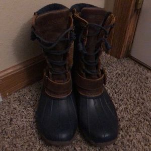 Lightly worn brown and blue Sperry Duck Boots. No obvious signs of wear.