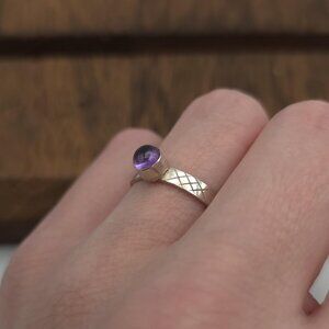 Size 7 Sterling Silver Fancy Scrolled Amethyst Ring A995